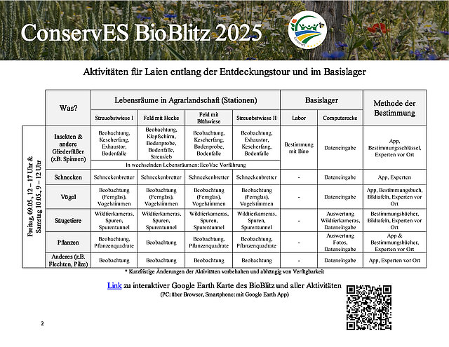 Link zur interaktiven Google Earth Karte des Bioblitz und aller Aktivitäten (PC: Uber Browser, Smartphone: mit Google Earth App)