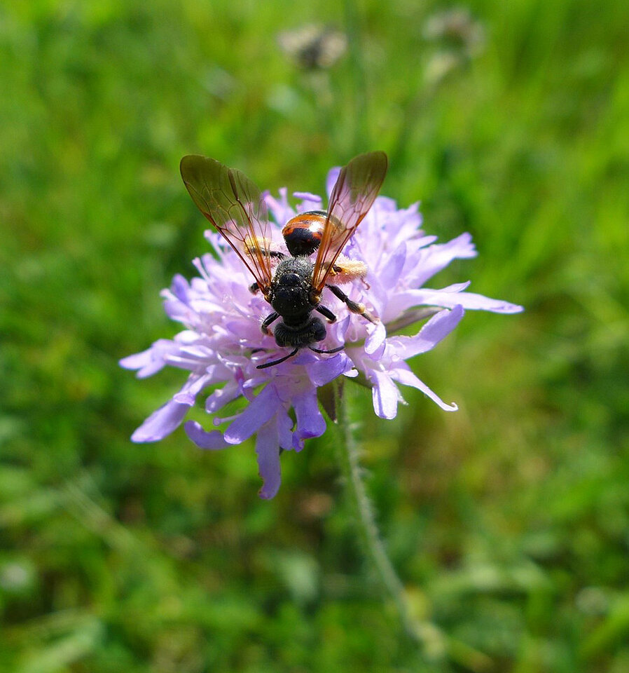Anders ist es oft auf Grünflächen – kleinen Parks oder Spielplätzen – sowie Brachflächen, etwa unbebauten Bauplätzen – zumindest, wenn die Vegetation auch wachsen darf und nicht durch häufiges Mähen gar nicht zur Blüte kommt. Dann bieten hier freie Bereiche im Boden und naturbelassene Hecken nicht nur Wohnraum, auch das Pflanzenangebot schmeckt den Insekten: „Gebietseigene Wildkräuter wie Arten der Gattung Knautia (Witwenblumen) oder Cirsium (Kratzdisteln) können hier gut gedeihen. Diese sind besonders wertvoll für Bestäuber.“